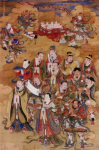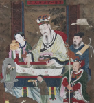 道教认为世间万物皆有灵,无论是天上的日月星辰,还是地上的山川河岳,都有神明在护佑着众生。东岳大帝是道教将东岳泰山神格化的一位自然神,自古以来泰山在五岳中占据首位,素有“五岳独尊”之美誉。泰山位于东方,是日出之地,也是万物发祥之地,因此东岳大帝的神职是主管着世间一切万物的生死。同时,正所谓一阴一阳谓之道,泰山不但是万物生长之地,也是人们的魂归之处。《云笈七签》云:“泰山君领群神五千九百人,主治死生,百鬼之主帅也”,所以东岳大帝也被赋予冥界之神的神职。作为泰山之地的主宰者,东岳大帝的座下惩奸恶而狱分