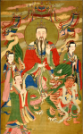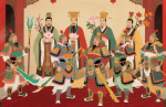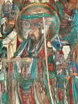 在三清圣祖之下,则为神霄九宸大帝。九宸之中,又以神霄玉清真王为主尊。《无上九霄玉清大梵紫薇玄都雷霆玉经》记述说:吾为高上神霄玉清真王长生大帝,其次则有东极青华大帝,九天应元雷声普化天尊,九天雷祖大帝,上清紫微碧玉宫太乙大天帝,六天洞渊大帝,六波天主帝君,可韩可丈人真君,九天采访真君,是为神霄九宸。《天皇至道太清玉册》卷五亦曰:“九宸,曰长生大帝、青华大帝,普化天尊、雷祖大帝、太乙天帝、洞渊大帝、六波帝君,可韩真君、采访真君,即元始九气化生也,故号九宸上帝。代天以司造化,主宰万灵。”这九位大神为神霄