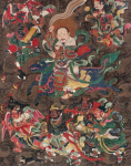 在道教神霄派、清微派的雷法体系中,雷部神灵组织严密,等级分明。据《道法會元》等典籍记载,雷部最高主宰为九天应元雷声普化天尊,其下设有五雷都司,位于玉清真王府碧霄上梵炁中的雷城之内。雷城“去府二千三百里,城高八十一丈,乃玉清王按治之所,卿师使相列职分司,主发生万物,驱动海岳,推迁四时,升降阴阳,录善罚恶”。五雷都司统摄天、地、水、龙、社令五雷,而五方雷将正是统领五方雷兵、执行具体雷令的重要神将。从神阶来看,五方雷将属于“五雷天君”品阶,为从五品神职。在雷部庞大的官僚体系中,其上尚有五方雷帝(五品)