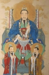 勾陈上宫天皇大帝,又作西方太极天皇大帝简称“勾陈大帝”、“天皇大帝”,为道教尊神“四御”中的第三位神。勾陈大帝是斗姆元君的长子,紫微大帝的胞兄。他协助玉皇上帝执掌南北两极和天地人三才、统御众星,并主持人间兵革之事,故亦是武神和战神。《晋书·天文志》:“钩陈口中一星曰天皇大帝,其神曰耀魄宝,主御群灵,执万神图。”天皇大帝与北极紫微大帝一样源于我国古代星辰崇拜,《上清灵宝大法》卷四称天皇大帝:“乃北极帝座之左,有星四座,其形联缀微曲如勾,是名勾陈,其下一大星正居其中,是为天皇大帝也。其总万星,位同北