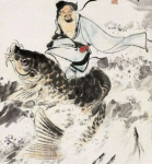 王子乔(约前567—前549年),姬姓,名晋,字子乔,是东周灵王(姬泄心)的太子,幼时天资聪颖,温良博学,不慕富贵,喜爱静坐吹笙,乐声优美如凤凰鸣唱;15岁行冠礼后,以太子身份辅政。晋平公派当时名流师旷前往朝见,问他以君子之德、治国之道,他旁征博引、侃侃而谈,师旷钦佩不已。周灵王二十一年(前551),谷、洛二水泛滥,王宫也受到洪水的威胁,就在这个时候,太子晋与周灵王在治水策略上发生分歧。周灵王准备沿用壅堵的方法,太子晋反对道:“不可,曾听自古为民之长者,不堕高山,不填湖泽,不泄水源,天地自然有其生生制约之道