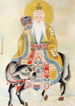 道德天尊是道教最高尊神“三清”之第三位神。在三清殿中右座的道德天尊手持太极神扇,象征“阴阳冲气以为和,万物生化”的“冲和”状态。历代道士无不崇奉太上老君,唐朝尊封老子为“太上玄元皇帝”,将老君圣诞着于政典,颁行天下。宋代称太上老君为“太上混元上德皇帝”,延至明清,官方,民间祭祀相沿不断,直到今天。太上老君,称“太清道德天尊”、“无量度人降生天尊”、“开皇末劫天尊”等,居玉几下三皇洞神太极宫,即大赤天宫。太上老君与元始天尊、灵宝天尊,合称“三清道祖”,或“三洞教主”、“三宝君”等,是道教对信仰之“