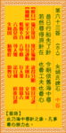 观音灵签 第88签 庞洪畏包公;吉凶--中下签;宫位--酉宫;灵签诗文 木为一虎在当门 须是有威不害人 分明说是无防事 忧恼迟疑恐惊心签语此卦木虎有威之象,凡事虚惊少实也解签炉头点雪 似耳旁风 可宜作福 后吉前凶家宅-不安自身-口舌求财-小人交易-不利婚姻-不合六甲-虚惊行人-阻讼-亏田蚕-六畜-损寻人-杳移徙-守旧失物-凶病-祭 虎山坟-凶人物故事庞洪是松仁宗皇帝的妻舅,称为国丈,由于势力大,在朝廷里为非作歹,陷害忠臣。他串通了奸臣杨淘,定计谋害大将狄青,说他杀死妻子,所有官员都审查不出谁是主谋。包公回朝后,要求审办此案