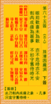 观音灵签 第68签 郭汾阳祝寿;吉凶-中上签;宫位--卯宫;灵签诗文 门庭清吉梦祯祥积善于门大吉昌讼理婚成蚕又熟病逢良药得安康签语此卦春梦百花之象,凡事贵人大吉也解签春深日暖 百花自开 事莫迟疑 从人显达家宅-旺自身-安求财-春旺交易-遂婚姻-成六甲-防惊行人-到田蚕-利六畜-旺寻人-至讼-胜移徙-如意失物-急寻病-安山坟-大吉人物故事窦燕山因行善积德,后生五子,一门显贵。五子名为‘窦伦、窦信、窦仁、窦仪、窦偃。一日窦仪投宿某客栈,上天要试窦仪的心,于是派遣金精化为女子,诈称临家少女,夜扣窦仪房门,窦仪闭户不纳,此女以投