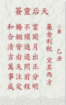 城隍庙灵签第十五签解签城隍爷灵签 第十五首 刘永上京 上签奎星报与君,汝且听知闻,上看十一口,下看十八分。时令此签春夏好,秋冬平。青云得路,笑遂颜开。金鸡报晓喜讯到,腊梅迎春占花魁。典曰古人刘永,家庭十分穷困,发愤读书,后上京求取功名,得中头名文状元,男儿得志,衣锦还乡,光宗耀祖。