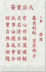 观音灵签 第96签 窦燕山积善;吉凶--上上签;宫位--戌宫;灵签诗文 巍峨宝塔不寻常 八面玲珑尽放光 劝君立志勤顶礼 作善苍天降福祥签语此卦福德现身之象,凡事大吉大利也解签这些福份 众人皆见 不用心忙 福德前定家宅-许愿自身-许经求财-正胜交易-大吉婚姻-好合六甲-喜行人-动田蚕-平稳六畜-欠利寻人-遇讼-和移徙-吉病-禳星山坟-平人物故事宋朝时人,名窦禹均,因住在燕山,又叫燕山。初时,燕山为人不正,心术不好,专做伤天害理的事,至到三十岁,还没有儿女。一晚,他梦到父亲劝他悔过行善,才能挽回天意。燕山从此痛改前非,重新做