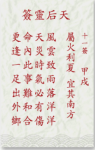 城隍庙灵签第十三签解签城隍爷灵签 第十三首 李靖归山 上签室家事已成,四序尽和平,自得心头快,休羡青云腾。典曰封神榜故事,托塔天王李靖协助姜子牙打败纣王后,建立周朝。姜子牙于是设封神榜,进行封神仪式,以安定在战斗中死亡的将士亡灵。李靖却要求归山修道,过着清静无为,淡泊名利的生活。