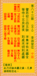 观音灵签 第83签 李渊登位;吉凶-中上签;宫位--未宫;灵签诗文 譬若初三四五缺 半无半有未圆全 等待十五良宵夜 到处光明到处圆 签语此卦月缺未圆之象,凡事候时则吉也解签守旧待时 如月初出 待等圆时 无有不吉家宅-许愿自身-夏秋吉求财-谨守交易-待时婚姻-迟六甲-生女行人-阻田蚕-六畜-平稳寻人-难讼-和移徙-守旧失物-难病- 殁送山坟-改人物故事李渊是隋朝末年在太原起兵的将官,部下大将有秦琼(叔宝)、徐茂公、称咬金等,公元六一八年,隋炀帝在江都被部将杀死,李渊在长安登位做皇帝,国号‘唐’,是为唐高祖。唐朝在历史上有
