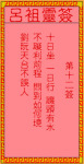 财神灵签第四十四签解签四四签、丁未签、乾隆君探刘墉府人生最乐是天伦、喜喜欢欢笑语频、要好儿孙须积德、风云际会候明春。清乾隆君游江南,见到刘墉府门匾写:天下第一家,疑之,入府进百岁堂,老者献茶迎待,读壁联曰父子公孙元及第,百岁夫妻百岁齐,后出府,举笔向匾首添一字,真天下第一家。病人占之,祈神消解。