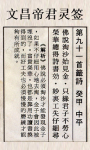 第 90 签文昌帝君灵签第九十签:壬癸中平签诗:崆峒城里事如麻 无事如君有几家劝汝不顺勤致祷 徒劳生事苦咨叹解析:切莫操之过急,四处找考试秘笈,应当一步一脚印,踏实准备,自然有上榜的机会。工作升迁方面,有如倒吃甘蔗越来越甜,别气馁,有耕耘必有收获。不要不知足,你今天能够平安无事,已经是幸福了,何必再妄求。若去妄求,则祸随时至矣。但当主静,不可贪图。问诉讼,以和为贵。问求财,徒劳心力,结果无收获。………………………………………………………………………………………………………………………………………………