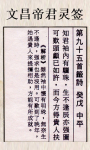 第 95 签文昌帝君灵签第九十五签:癸戊中平签诗:知君袖内有骊珠 生不逢辰亦强图可叹头颅已如许 而成方得贵人扶解析:虽然你已经准备周全,可是这个时机对你而言,并不是很理想,也无法强求,唯有靠行善来转运。工作升迁方面,脚踏实地,多注意自己的人际关系,改掉一些恶习,好运就会跟着来。……………………………………………………………………………………………………………………………………………………………站内微信:周易咨询-道门拜师,文昌学业-事业官运-姻缘,受生债-补财库-拜斗,化太岁-化童子-符咒,祭祀-亡者-无缘子女